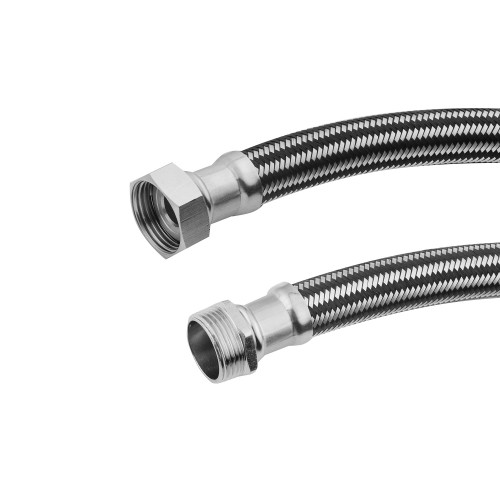 Шланг виготовлений з нейлонового плетіння і має латунну гайку, що забезпечує його довговічність і стійкість до механічних навантажень. Прямий шланг має внутрішню і зовнішню різьбу, а також діаметр підключення 1"х1". Завдовжки 80 см, цей шланг ідеально підходить для різних систем завдяки своїм характеристикам.
