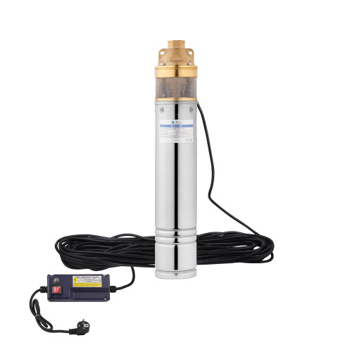 Глибинний насос Agua 4SKM 100 обладнаний зовнішнім пультом керування, що дозволяє зручно запускати та контролювати роботу пристрою. Відцентровий механізм і потужність 750 Вт забезпечують ефективну подачу води з глибини до 61 м з продуктивністю до 45 л/хв. Насос підходить для свердловин від 4″, побутового водозабезпечення та систем поливу.