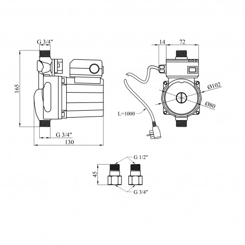 Комплектація Насос, гайки, кабель з євровилкою, інструкція