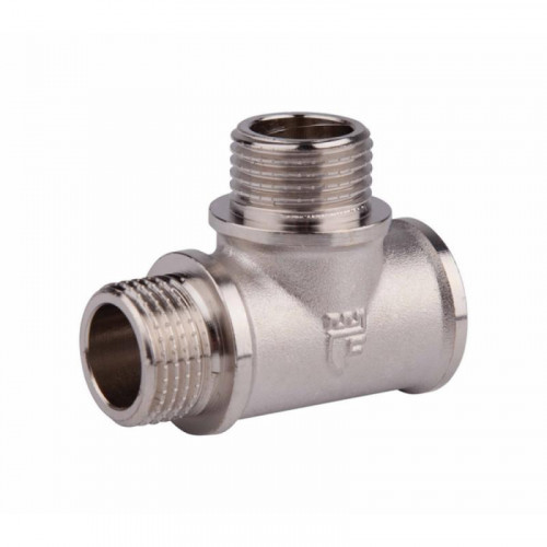 Трійник латунний Thermo Alliance Forte 3/4" ВНН з нікельованим покриттям застосовують для приєднання труб до основної магістралі під кутом 90 градусів і являє собою з'єднані порожнисті циліндри з латуні.