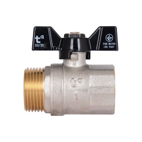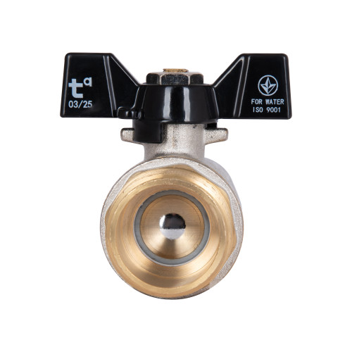 Прямий кран кульовий Thermo Alliance Base 1" ВЗ для води (метелик) SD607W25 — запірна арматура для систем холодного та гарячого водопостачання, опалення й інших інженерних комунікацій. Запірний елемент — куля з отвором для пропускання або перекриття потоку робочого середовища. Матеріал виготовлення виробу — латунь, покриття — нікель. За допомогою повороту ручки-«метелика» на 90° здійснюється зміна положень «закрито»/«відкрито». З’єднання різьбове, розмір — один дюйм.