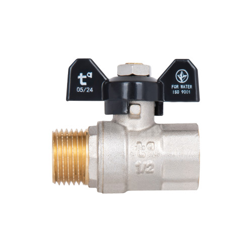 Півдюймовий прямий кран кульовий Thermo Alliance Base 1/2" ВЗ для води (метелик) SD607W15 з одного боку оснащений внутрішньою різьбою, а з іншого — зовнішньою. Латунний виріб служитиме надійно, затвор-кулька забезпечує високу герметичність. Сфера застосування такої запірної арматури — системи холодного і гарячого водопостачання, опалення (макс. робоча температура — 120 °С). Ручка-метелик дозволяє розмістити кран там, де недостатньо місця для повороту важеля.