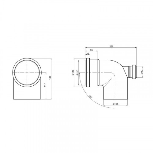 Коліно каналізаційне з відводом TA Sewage 50х110х110, 90° (назад)