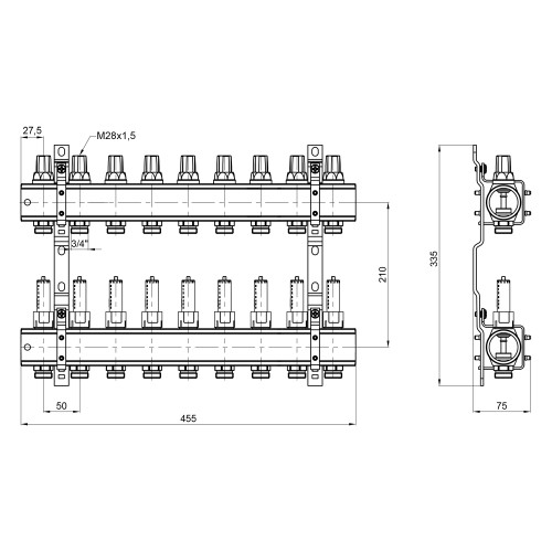 Колектор Icma 1" 9 виходів, з витратомірами №K013