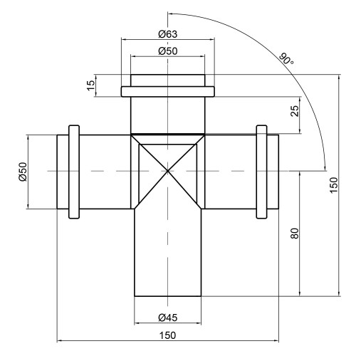 Хрестовина каналізаційна TA Sewage 50, 90°
