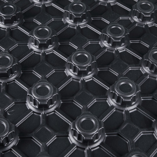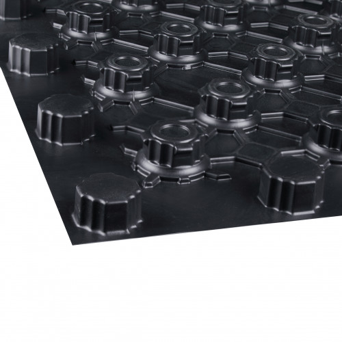 Теплоізоляційна фігурна панель щільної структури з розширеного полістиролу EPS, сертифікована маркою CE – відповідає стандарту EN 13163, у комплекті з ламінованою термоформованою оболонкою товщиною 600 мікрон з виступами висотою 22 мм. Підходить для розміщення труб із зовнішнім діаметром 16 мм і 17 мм; крок укладання 50 мм. У комплекті з бічною стрічкою для з’єднання панелей, укладання та герметизації під час заливки.