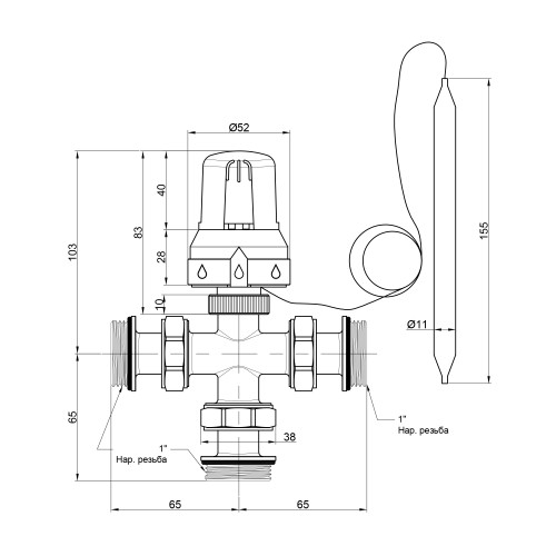 Вентиль триходовий зонний,термостат. з термоголівкою, занур.датч. 1"з. №324 Icma