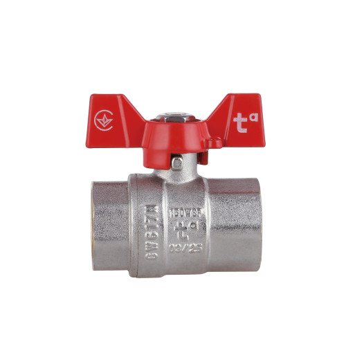 Прямий кульовий кран Thermo Alliance Standart 3/4" ВР для води (метелик) SD602NW20PN40 — запірна арматура з латуні з корпусом, покритим шаром нікелю. Затвором служить кулька з отвором. Поворот ручки-метелика на 90° відкриває або закриває протік. Такий кран призначений для роботи в системах гарячого і холодного водопостачання, опалення. Максимальна температура експлуатації пристрою — 120 °C. Різьба — внутрішня з двох сторін.
