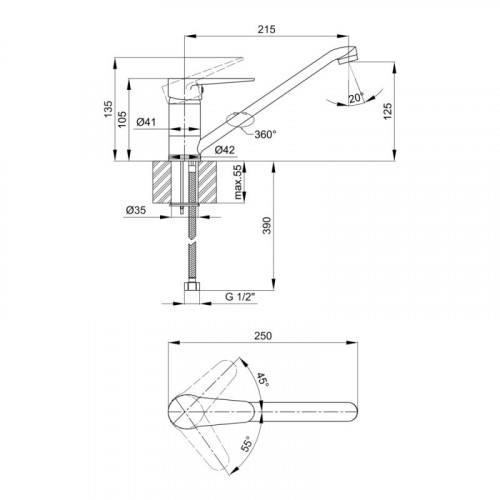 | Додаткові характеристики | Довжина гнучкого підводу - 390 мм. |