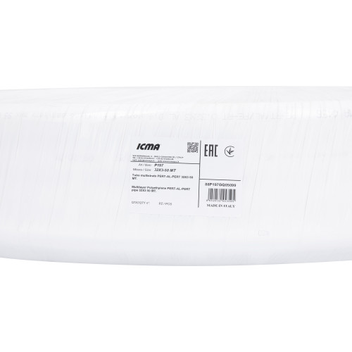 П'ятишарова металопластикова труба PE-AL-PERT ICMA Арт. P197 відповідає стандарту EN ISO15875, має максимальну температуру 110°C і робочий тиск 10 бар. З'єднання пластика (PE-RT) і металу (алюмінію) забезпечує трубі чудову якість, об'єднує переваги пластикових і металевих труб і виключає слабкі сторони обох матеріалів. Діаметр підключення труби - 32 мм.