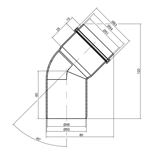 Відвід (коліно) TA Sewage, розмір підключення даного фітинга 50 мм в діаметрі, застосовується при монтажі в системах внутрішньої каналізації, для повороту каналізаційного трубопроводу під кутом 45°. Виготовляється фітінг з високоякісного поліпропілену. Спосіб підключення - розтруб, що полегшує і спрощує монтаж каналізації.