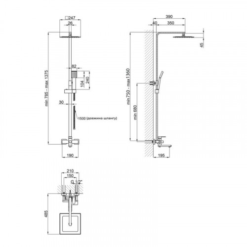 | Довжина кронштейна для верхнього душу, мм | 350 |