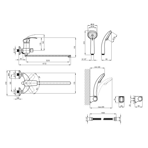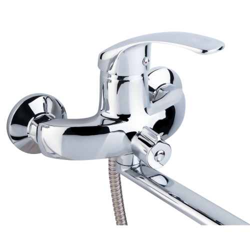 Змішувач для ванни Lidz (CRM) Mars 81 005-1 New виготовлено із латуні, має довгий вилив і зручне руків'я. Для вмикання подачі води досить підняти та повернути його в потрібне положення. Змішувач та тримач лійки монтуються на стіну за допомогою кріпильних елементів, які є в комплекті. Круглі хромовані розетки приховають похибки монтажу на обробці ванної кімнати. Перемикання на ручний душ виконується поворотним дивертором.