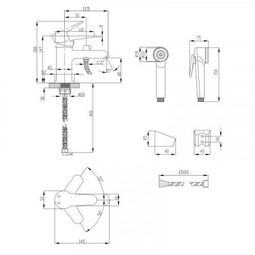 | Комплектація | Змішувач, гнучкий підвід, лійка для біде, душовий шланг, кронштейн, кріпильні деталі. |