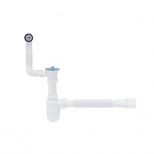 Сифон для кухонної мийки Lidz LK12 має вигляд колби, виготовлений із пластику білого кольору. Виріб має гладку внутрішню поверхню, що перешкоджає накопиченню бруду на стінках. Резервуар колби легко знімається, тому його очищення від осілих твердих частинок не складе великих клопотів. Гофрований вихід дає можливість змінювати довжину та кут труби. Завдяки зливному отвору для переливу можна уникнути переповнення миття водою. Сифон комплектується корком.