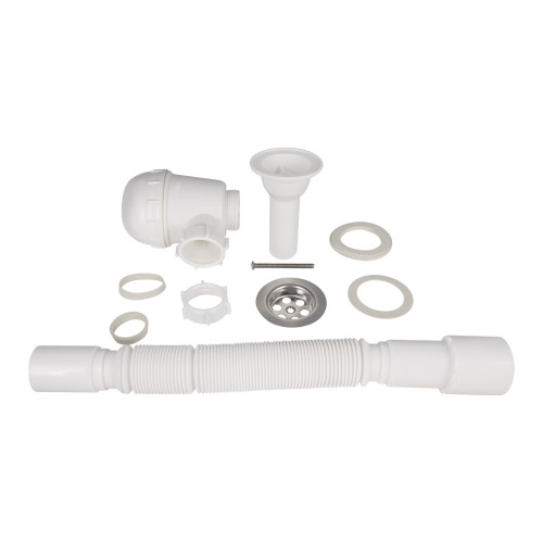 Сифон для раковини Lidz LU01 має вигляд колби, виготовлений із пластику білого кольору. Виріб має гладку внутрішню поверхню, що перешкоджає накопиченню бруду на стінках. Резервуар колби легко знімається, тому його очищення від осілих твердих частинок не складе великих клопотів. Гофрований вихід дає можливість змінювати довжину та кут труби.