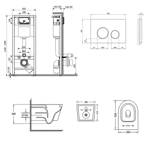 Набір Qtap інсталяція 3 в 1 Nest QT0133M425 з панеллю змиву круглою QT0111M11112CRM + унітаз з сидінням Jay QT07335176W