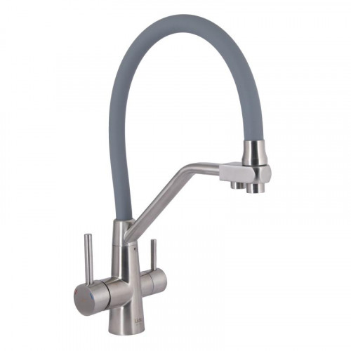 Змішувач для кухні Lidz Aria 020F3 з гнучким виливом з підключенням для питної води (k35) LDARI020F3GNK39211 Grey / Nickel