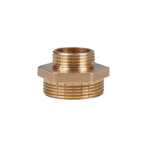 Thermo Alliance Standart Ніпель 1 1/2"х1" НР SD4084025 — це прямий з'єднувальний фітинг, оснащений з обох боків зовнішньою різьбою. Сфера використання — системи опалення, водопостачання, кондиціювання тощо. Таке роз'ємне з'єднання застосовують під час монтажу трубопроводів. Матеріал виготовлення (деталь зроблена з латуні) міцний, стійкий до корозії.