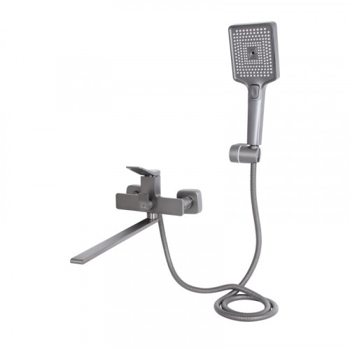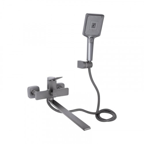 Змішувач для ванни Presto з довгим поворотним виливом (з душовим гарнітуром) QTPRE2601GRP45583 Graphite Qtap