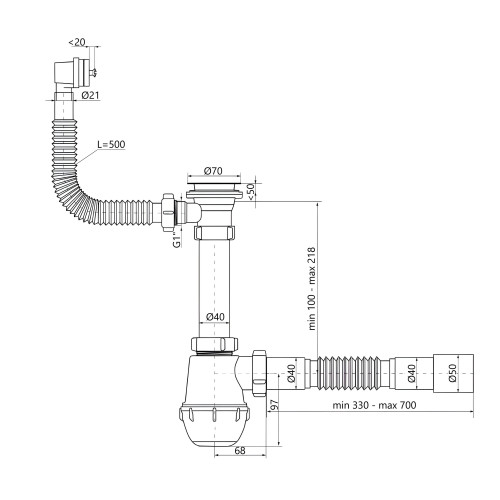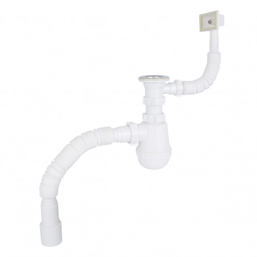 Сифон для кухонної мийки Lidz LK17, колбовий з квадратним переливом (вихід 50 мм)
