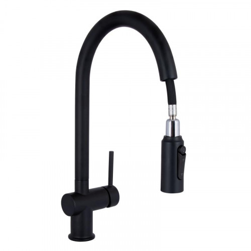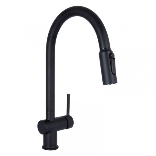 Змішувач для кухні Qtap Rozcesti з висувним виливом з підключенням для питної води QTROZ366BLM45940 Black Matt