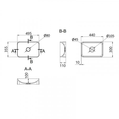 Габарити чаші (ШхДхГ), мм 480х335х100