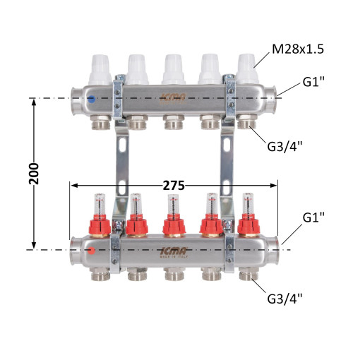 Колектор із витратомірами (нерж.) 1"х5 Icma № К073