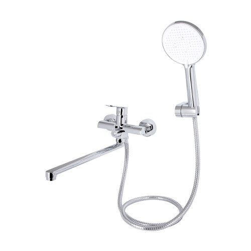 Змішувач для ванни Qtap Evia QTEVI260CRM47579 з довгим поворотним виливом — це зручне та практичне рішення для комбінованого використання у ванній кімнаті. Виготовлений із міцної латуні з хромованим покриттям, він стійкий до корозії та механічних пошкоджень. Довгий вилив забезпечує зручність під час наповнення ванни та може повертатися у бік умивальника. Вбудований перемикач дозволяє легко змінювати режим подачі води між виливом і душем. У комплект входить душовий гарнітур, що включає лійку та шланг. Настінний монтаж забезпечує зручність в експлуатації та економію простору.