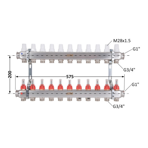 Колектор Icma № К073 з витратомірами (нерж.) 1" х 3/4" на 11 виходів