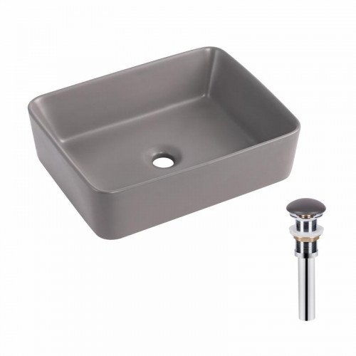 Раковина накладна Qtap Tern 480x370x135 мм, Stone grey, прямокутна, з донним клапаном QT17116069SG