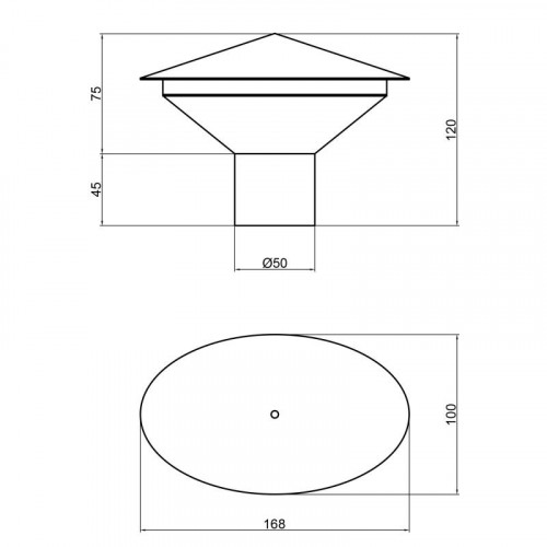 Вентиляційний грибок для внутрішньої каналізації TA Sewage має діаметр 50 мм. Застосовується від впливу атмосферних опадів, для захисту каналізаційних стояків, які виведені на дахах будівель, також для витяжки запахів з каналізаційної системи. Матеріал виготовлення вентиляційного грибка - поліпропілен.