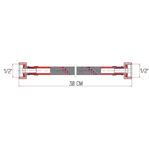 Шланг до води нержавіюче оплетення у силіконі 30см 1/2 внутрішня - 1/2 внутрішня Forte
