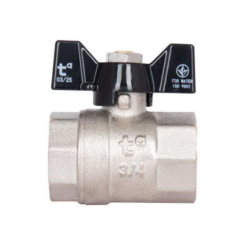 Кран кульовий Thermo Alliance Base 3/4" ВР для води (метелик) SD602W20 зроблений із латуні, покритої шаром нікелю. Для керування краном призначена зручна ручка-важіль. Під час встановлення крана необхідно звернути увагу, щоб після завершення монтажу залишилось достатньо вільного місця для повороту ручки. Виріб не призначений для регулювання величини потоку робочого середовища. Запірний механізм (кулька) повинен знаходитися в одному з двох положень — «закрито» або «відкрито».