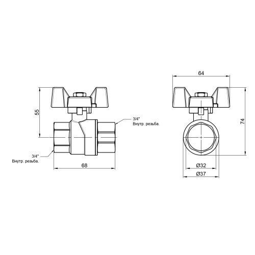 Кран кульовий 1" внутрішня * 1" внутрішня (для газу) метелик
