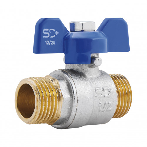 Прямий кульовий кран Thermo Alliance Base 1/2" НР для води (метелик) SD606W15 з зовнішньою різьбою з кожного з боків зроблений із латуні. Зверху корпус покритий шаром нікелю. Для керування положенням затвора-кульки (відкрито/закрито) використовують акуратну ручку-метелик. Кран призначений для перекриття руху робочого середовища в системах водопостачання та опалення. Не підходить для регулювання. Затворний механізм забезпечує високу надійність і герметичність.