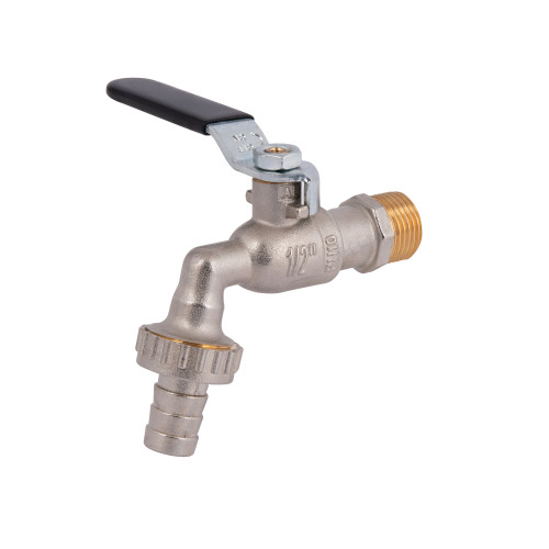 Садовий кульовий кран Icma №599 оснащений системою запобігання застою води та захистом від замерзання. Оснащений штуцером для підключення шланга діаметром 15 мм. Корпус виготовлений з нікельованої латуні, куля та керуючий шток - також латунні. Ущільнювачі виготовлені з EPDM із додаванням тефлону. Керування здійснюється за допомогою алюмінієвого важеля. Призначений для роботи з водою в температурному діапазоні від 5 до 90°C, витримує тиск до 10 бар.