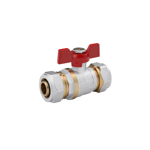 Кран кульовий металопластиковий Karro 20х20 з ручкою-метеликом, нікельований — це запірна арматура, призначена для перекриття потоку рідини в трубопроводах, що складаються з металопластикових труб діаметром 20 мм. Ручка-метелик забезпечує швидке і зручне управління, а нікельоване покриття гарантує довговічність і естетичний вигляд.