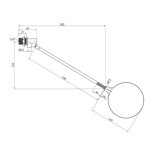 Поплавковий клапан для ємності Karro 3/4" з кулею 5" латунний