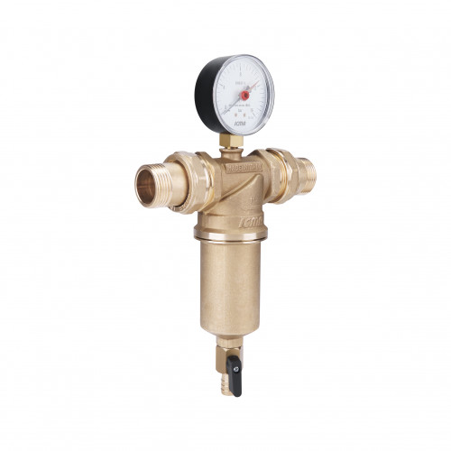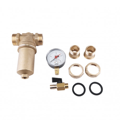 Фільтр ICMA Арт. 751 затримує забруднення нерозчинні в воді: частинки іржі, волокна паклі, пісок і т.д. і підтримує постійну подачу фільтрованої води. Компактна форма фільтрів, ідеально підходить для побутового застосування. Фільтр комплектується манометром і зливним краном. Забруднення, затримані в нижній частині фільтра зливаються через ручний зливний кран, під час промивання. Має розмір підключення 1".