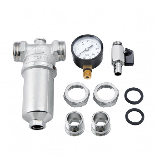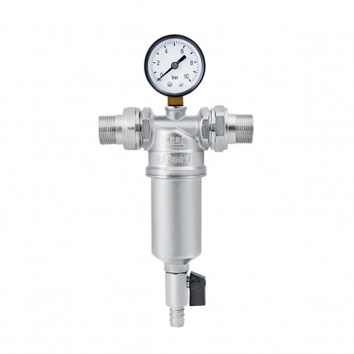 Фільтр самопромивний Thermo Alliance Standart 3/4" для води, виготовлений із латуні з нікельованим покриттям, комплектується манометром.