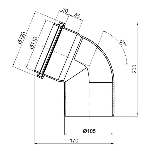 Відвід (коліно) TA Sewage, розмір підключення даного фітинга складає 110 мм в діаметрі, застосовується при монтажі в системах внутрішньої каналізації, для повороту каналізаційного трубопроводу під кутом 67°. Матеріал виробу - високоякісний поліпропілен. Має розтрубну конструкцію, що полегшує і спрощує монтаж каналізації.
