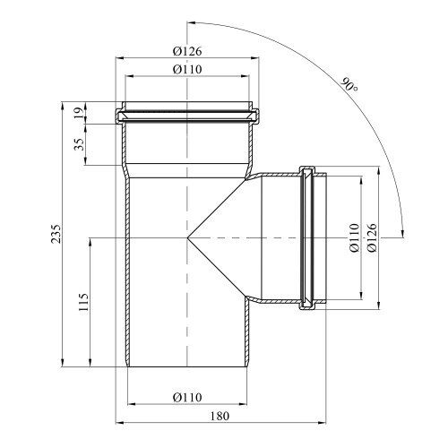 Трійник для внутрішньої каналізації Baux 110×110/90° — це з'єднувальний фітинг, призначений для організації відгалуження каналізаційного трубопроводу під кутом 90°. Забезпечує надійне з'єднання труб діаметром 110 мм і використовується при монтажі систем внутрішньої каналізації в житлових і комерційних приміщеннях.