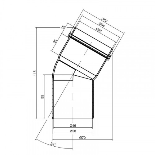 Відвід (коліно) TA Sewage 22° застосовується при монтажі в системі внутрішньої каналізації, має два відводи діаметром 50 мм, які служать для відгалуження труб від основного стояка. Матеріал виробу - високоякісний поліпропілен. Спосіб приєднання - розтруб, що полегшує і спрощує монтаж каналізації.