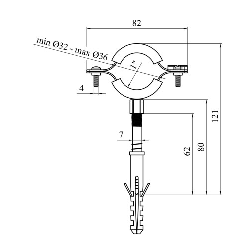 Хомут зі шпилькою в зборі Karro 1" 32-36 мм металевий