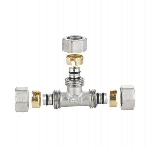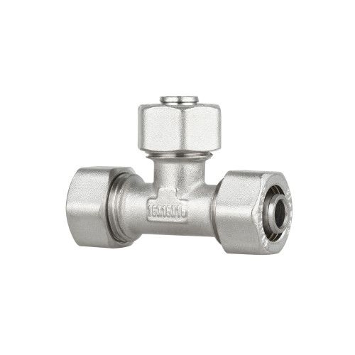 Трійник обтискний Thermo Alliance Standart 16 SD158W161616 є фітингом для монтажу металопластикової труби і має розмір приєднання 16х16х16 мм. Матеріал виготовлення фітинга – латунь, виріб має нікельоване покриття.
