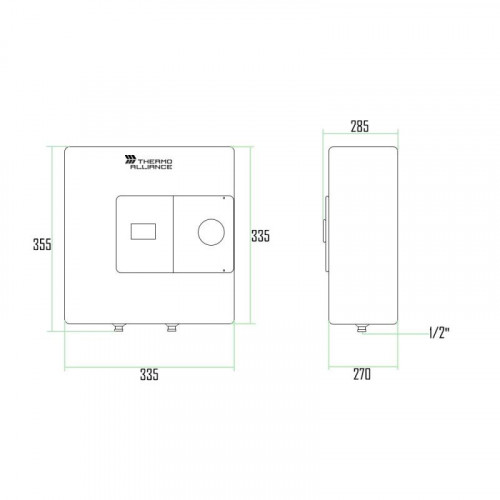 Водонагрівач Thermo Alliance 10 л над мийкою, мокрий ТЕН 1,5 кВт SF10X15N вирішує завдання забезпечення гарячою водою, в першу чергу для миття посуду. Всередині бак компактного водонагрівача вкритий шаром емалі, які захищає поверхню від корозії. Патрубки 1/2" для під’єднання до системи водопостачання розташовані знизу. На фронтальній поверхні корпусу — ручка управління та дисплей з індикацією температури нагріву. Товщина внутрішнього бака - 2 мм.