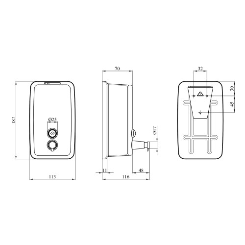 Дозатор для рідкого мила KRM Rizze - ACC405-8 від Kroner на 800 мл виготовлений із металу з хромованою поверхнею. Подання мила відбувається в разі натискання на кнопку. Диспенсер кріпиться на стіну в будь-якому зручному місці шурупами, які входять до комплекту.