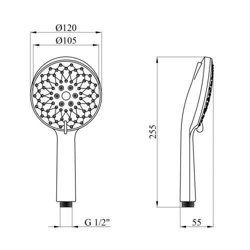 Виготовлена з ABS-пластику з двошаровим нікель-хромовим покриттям, стійким до подряпин та корозії. Підключення 1/2", форма кругла.