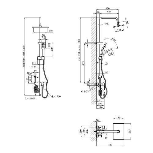 Регульована душова штанга: Можливість регулювання висоти штанги дозволяє налаштовувати систему під різні потреби членів вашої родини.